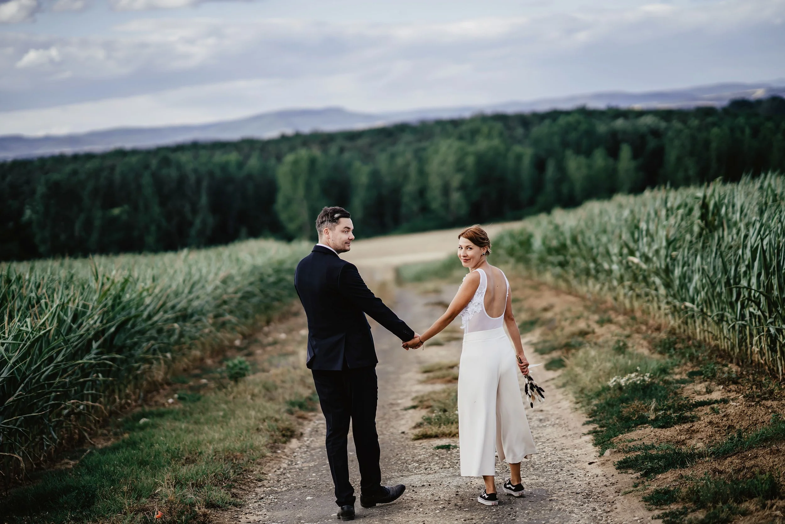 Nikit és Tomit szülőfalumból, Érsekvadkertről ismerem. Többek közt az esküvői pályafutásom is itt kezdődött. Ennek már több, mint 10 éve. Örömmel vállaltam el Nikiék felkérését, azóta sokat fejlődött a látásmódom és más szemmel is látom ezt a vidéket. A fotózáson csodálkoztam rá, egy olyan helyszínre, ami mellett fiatal koromban csak elbringáztam. Akácosok, kis fenyvesek és kukorica ültetvények is mind jó fotótémák, pláne, ha sikerül egy boldog párt is belekomponálni.